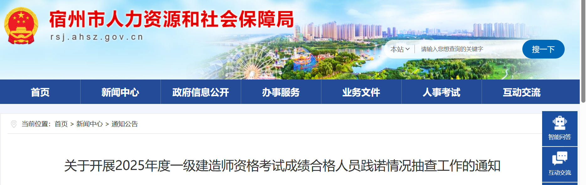 宿州市人社局发布的公告原文如下: