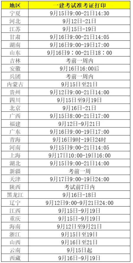 三、2025年一级建造师考试准考证打印时间