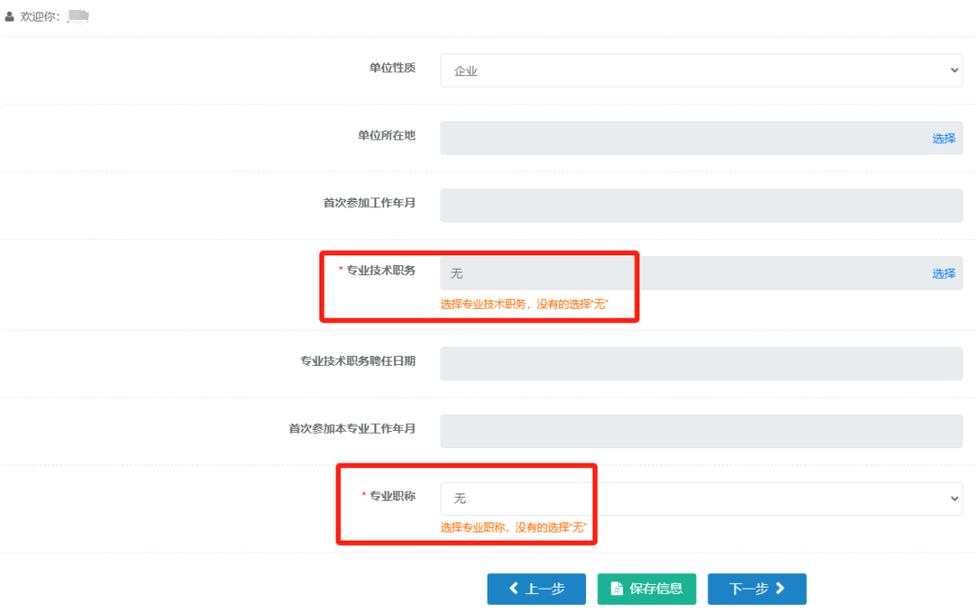 专业技术职务,可以选择无,专业职称也可以选择无职称,不要纠结,不影响报名。