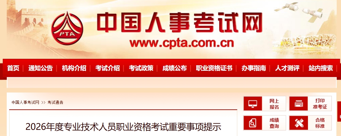 《2026年度专业技术人员职业资格考试重要事项提示》通知内容如下