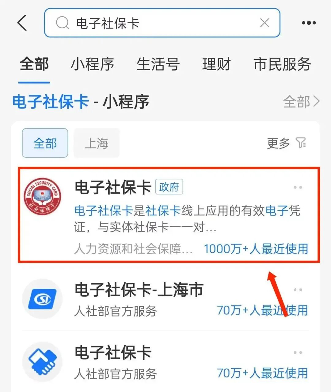 1、打开【支付宝】APP,搜索、进入【电子社保卡】小程序。