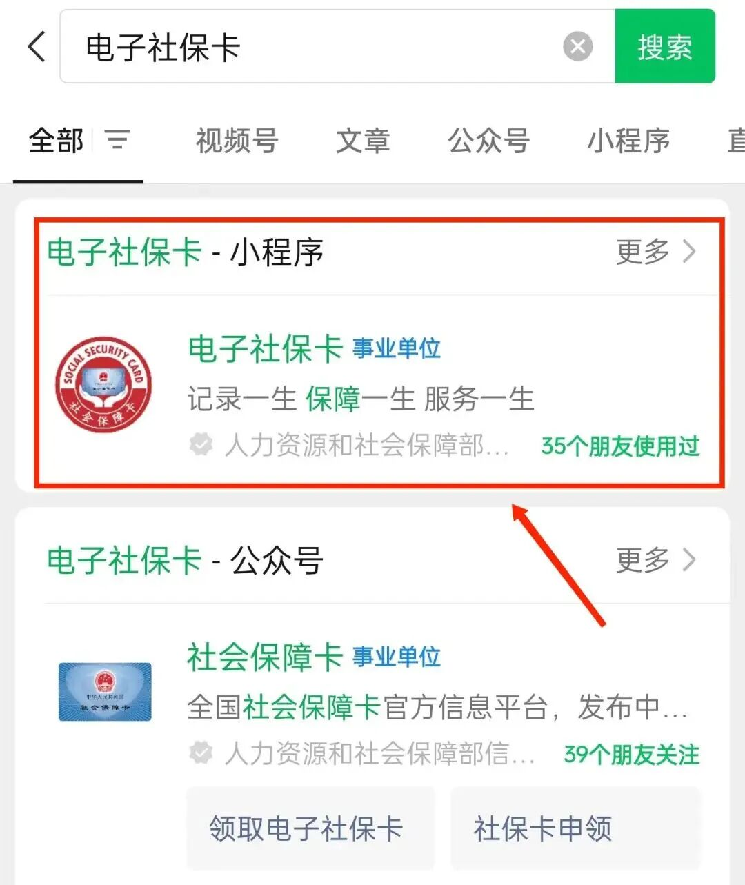 1、打开【微信】APP,搜索、进入【电子社保卡】小程序。