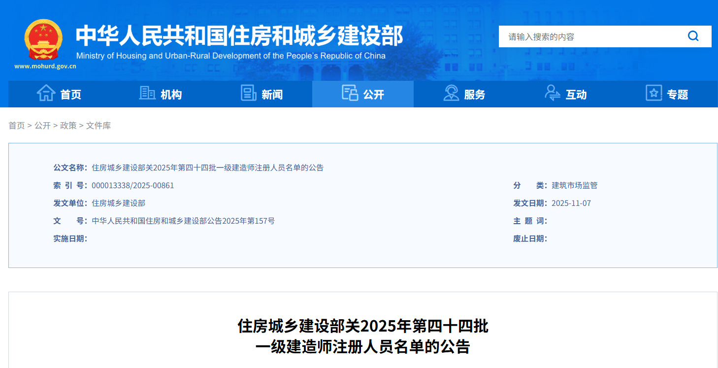附件:准予一级建造师注册人员名单(2025年第四十四批)
