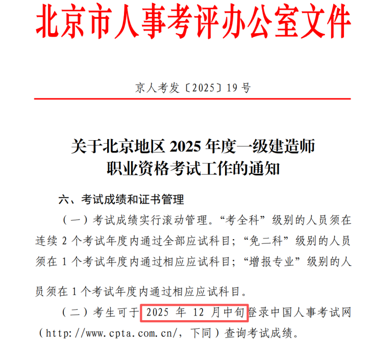 2025年一级建造师考试结束有一段时间了。最近小编收到不少伙伴咨询2025年一建考试出成绩的时间,小编找到了25年各省发布的一建报名公告,公告中显示一建成绩将于12月中旬公布,在中国人事考试网查询。
