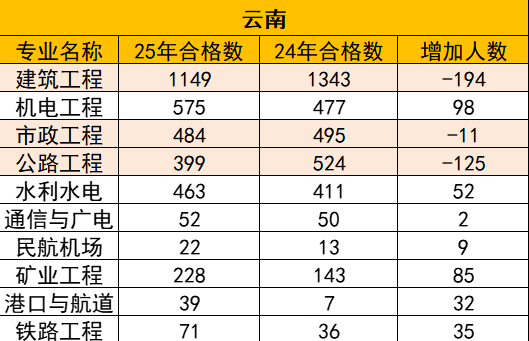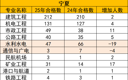 👉宁夏、海南、青海、云南各专业一建考试合格人数对比数据如下: