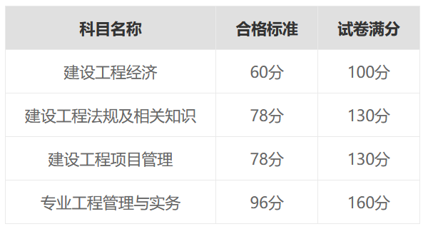 因此,一级建造师各科合格标准是:《建设工程经济》60分及格、《建设工程法规及相关知识》78分及格、《建设工程项目管理》78分及格、《专业工程管理与实务(10个专业)》96分及格。详情如下: