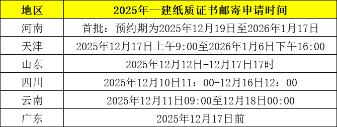4、2025年一建纸质证书邮寄时间