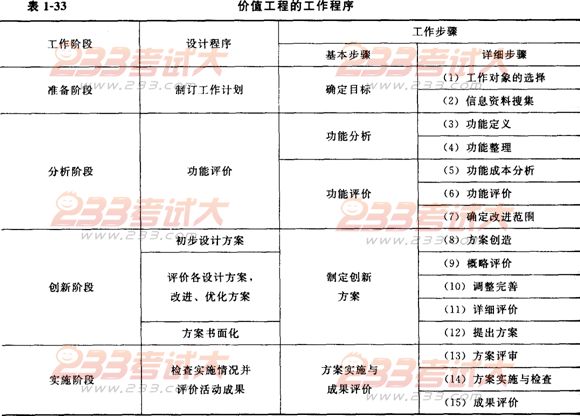 【答案】ADE本题考核的是价值工程的工作程序。价值工程的工作程序见表1-33。