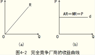 单个厂商面临的需求曲线是一条平行于横轴的水平线,如28页4-1中(b)所示。