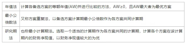 计算期不同的互斥方案的比选,需要对各备选方案的计算期和计算公式进行适当的处理,使各方案在相同的条件下进行比较。通常的处理方法包括年值法、最小公倍数法和研究期法等。