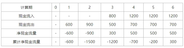 【计算提示】公式记忆准确,考题一般只会给出现金流入(正值)与现金流出(负值)金额,需要计算净现金流量以及累计净现金流量。注意切勿形成惯性思维,表格的最上方不一定就是现金流入,也有可能是现金流出。