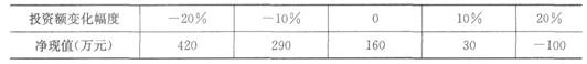 24.某建设项目以财务净现值为指标进行敏感性分析的有关数据,如表2所示,则该建设项目投资额变化幅度的临界点是( )。