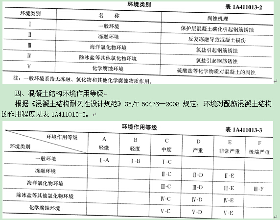 1A411013 建筑结构工程的耐久性