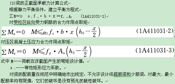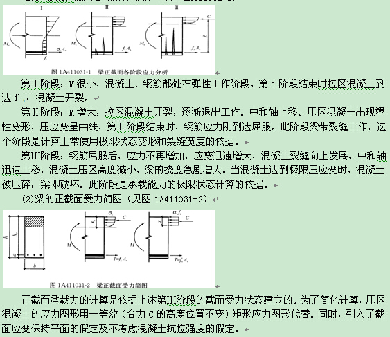(1)适筋梁正截面受力阶段分析(见图1A411031-1)