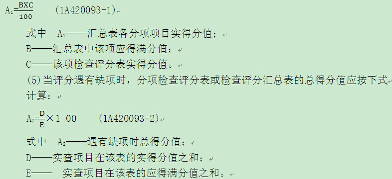 (4)检查评分汇总表中各分项项目实得分值应按下式计算: