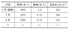 基期为当年5月,工程款按月计量,每月调整价差。该工程投标函投标总报价中,沥青占35%,柴油占15%,玄武岩占20%。施工单位7月份完成工程产值3156万元,8月份完成工程产值4338万兀。各月价格见右表。