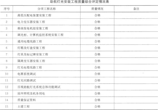 (3)助航灯光安装工程质量综合评定情况,见下表所示。