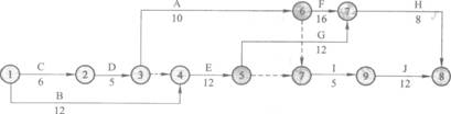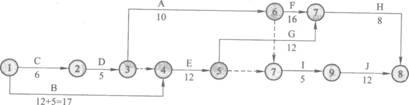 (1)按照A—D-I顺序组织施工,则网络计划变为下图。