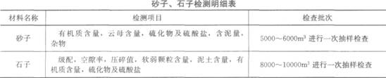 (2)上表检测批次不符合要求,砂子检查应加密至每2000~3000 m3进行一次抽样检查。