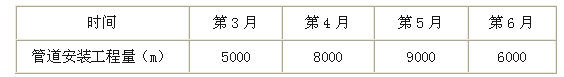 施工单位前3个月进行设备安装,从第3个月开始进行管道安装。其中管道安装工程每月实际完成并经监理工程师签证确认的工程量如下表: