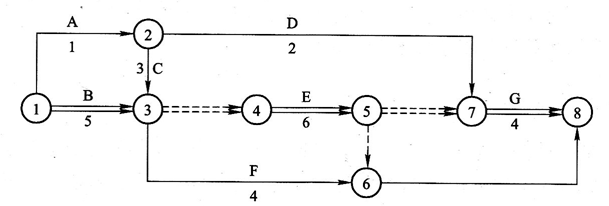 图中箭头上方为工程名称,箭头下方为持续时间,双箭头为关键线路。