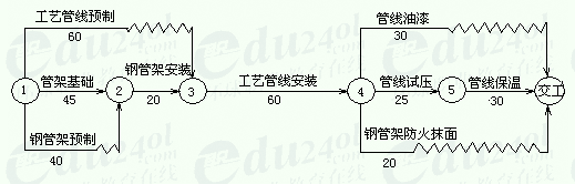 (2)当工程进行了5个月时,又将实际进度与网络计划进行比较发现,工艺管线安装拖后20天。
