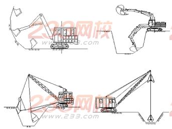 正铲挖掘机适用于开挖含水量小于27%的土和经爆破后的岩石和冻土碎块;大型场地整平土方;工作面狭小且较深的大型管沟和基槽路堑;独立基坑及边坡开挖等。正铲挖掘机的挖土特点是:“前进向上,强制切土”。