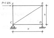 6.有一桁架,受力及支承如右图,则AC杆和AB杆的内力分别为( )。(拉力为正,压力为负)