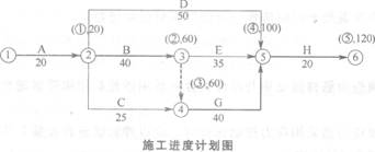 3.如下图所示,粗实线表关键线路;经分析可知,E工作有5d总时差。