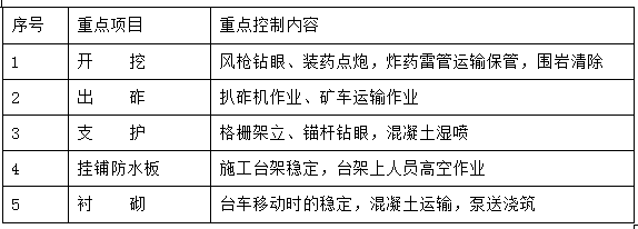 (1)开挖;(2)通风;(3)出砟;(4)支护;(5)仰拱与填充;(6)挂铺防水板;(7)衬砌;(8)沟槽。