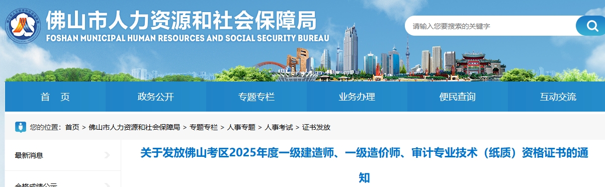 二、证书人员:在佛山报名点报名参加2025年度一级建造师、一级造价师、审计专业技术考试,成绩全科合格且公示无异议的人员。