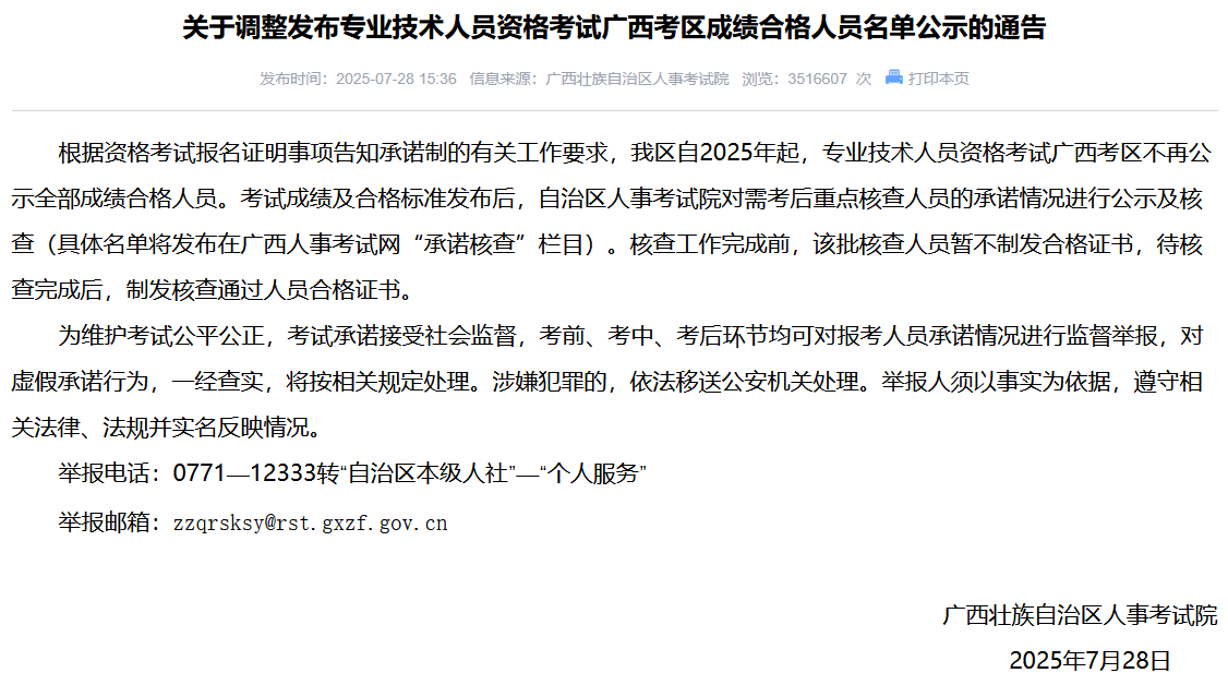广东人事网:明确发布通知,自2025年9月起,一建合格人员名单不再进行公示。内容截图如下: