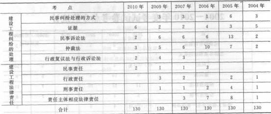 度考试试卷考点分值统计仍按相应年度教材章节进行统计。2004—2010年度考试试卷考点分值统计仅供考生参考,考点