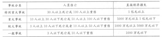 【解析】根据生产安全事故造成的人员伤亡或者直接经济损失,事故一般分为四个等级,见下表。