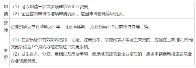 考点4、建筑业企业资质的申请、许可、延续和变更