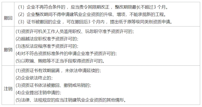 考点5、企业资质证书的撤回、撤销、吊销和注销