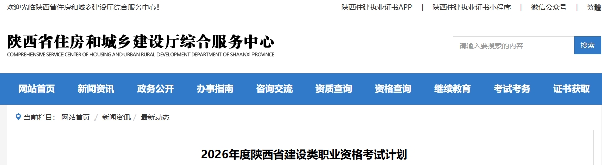 2月6日,陕西省住房和城乡建设厅综合服务中心发布《2026年度陕西省建设类职业资格考试计划》,明确2026年陕西省一级建造师考试时间为9月12日至13日。