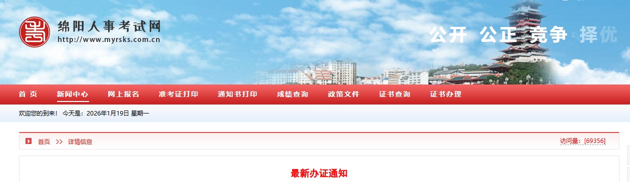1月16日,绵阳人事考试网发布《最新办证通知》,明确绵阳2025年度一级建造师证书持续发放中,领取地点:市人事考试中心办证室。
