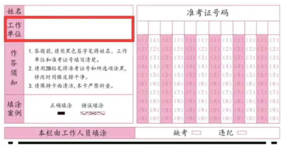 应试人员须使用黑色墨水笔在相应位置或区域认真填写姓名、准考证号、试卷代码(如需填写),并使用正规2B铅笔按规范填涂样式填涂对应信息点并进行检查,确保信息完整、准确。