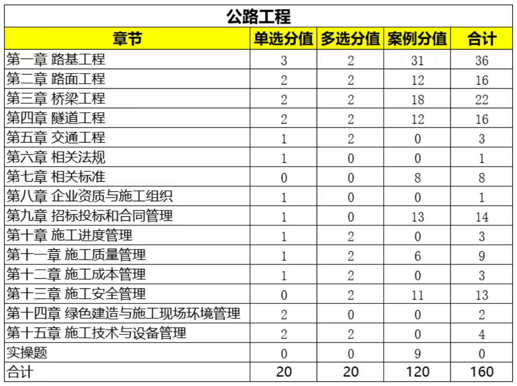 2025年一建公路科目考试以第一章公路工程施工技术为重点,分值占比最高;第二、三章侧重理解与记忆。试卷由单选、多选及案例题组成,总分160分,合格线96分。案例多围绕路基、路面、桥梁、隧道等基础知识结合实务考查。