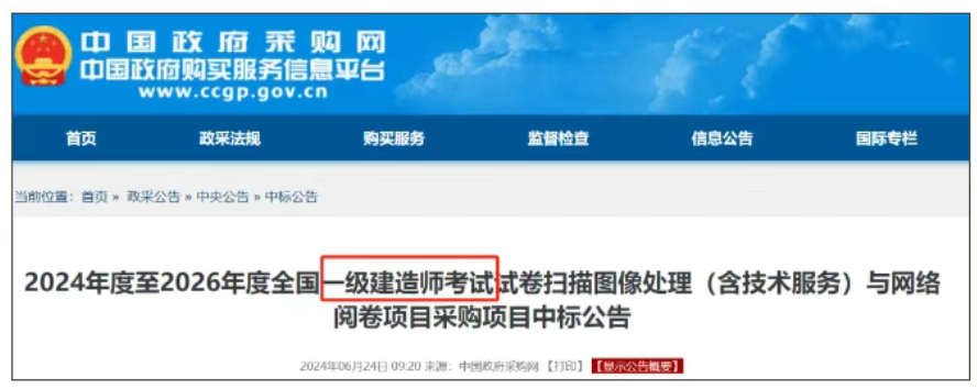 此前,官方已公布2025年一建考试阅卷单位有六家,主要承担2024-2026年度全国一级建造师执业资格考试试卷扫描图像处理及网上评分技术服务工作,提供扫描图像接收处理设备、计算机、服务器、存储设备,满足当年约220万份答题卡(每份为6张A4双面)的扫描图像处理及评分工作。
