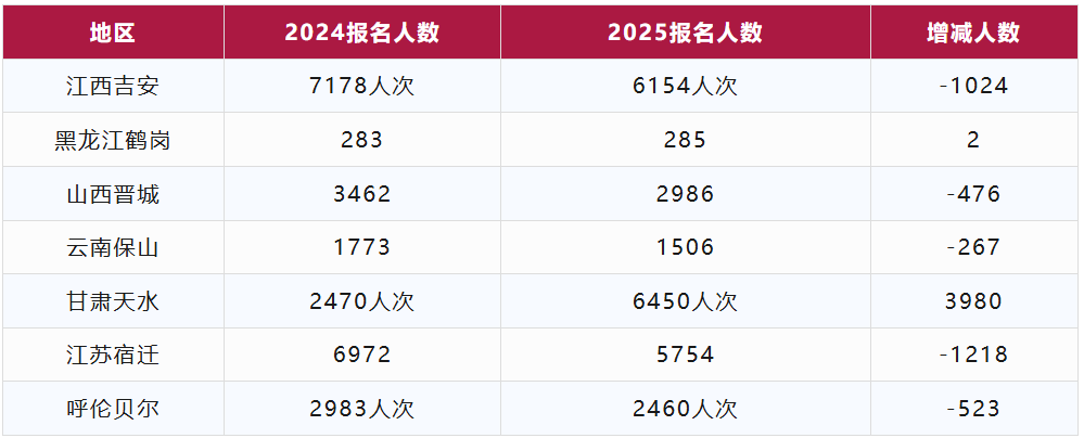 江苏宿迁更明显,接近7000的报名量,今年直接少了1200多。