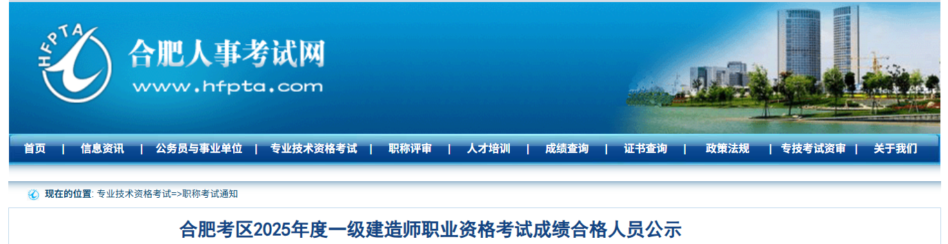 12月16日,合肥人事考试网发布2025年一级建造师考试合格人员公示名单,全市共3656人合格。