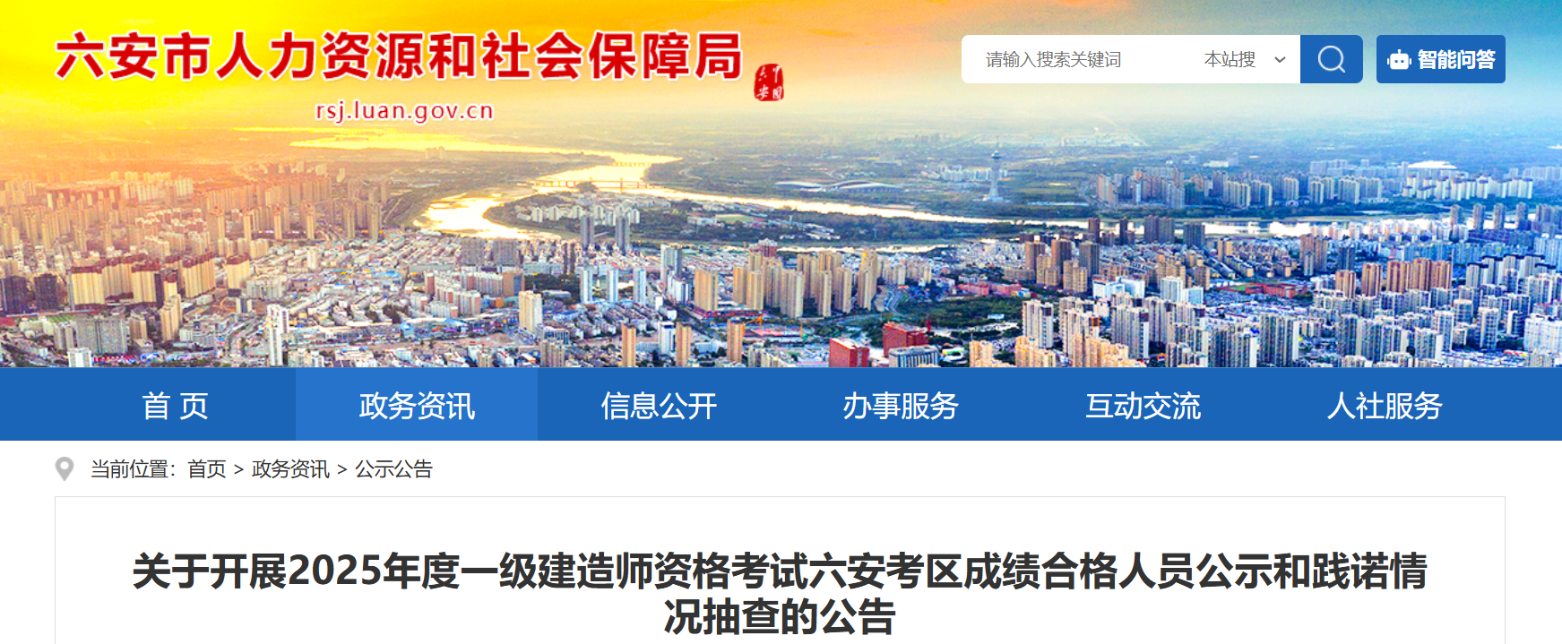 根据专业技术人员职业资格考试报名证明事项告知承诺制有关要求,现对2025年度一级建造师资格考试六安考区成绩合格人员进行公布,同时开展践诺情况抽查工作,对考生报考资格条件进行抽查,抽查比例不少于5% (抽查人员名单见附件),被抽查的考生同时也将收到相关通知。