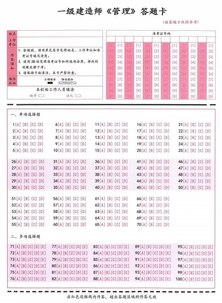 ①一级建造师考试开考后,监考老师会第一时间提醒大家填好姓名、填涂准考证号。