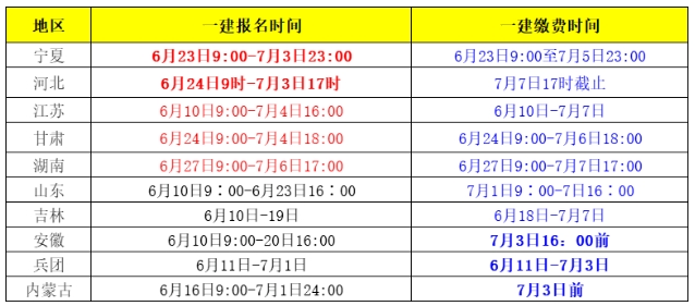 2025年一建考试报名缴费仅剩以下几个地区正在进行,请同学们及时报名缴费↓↓