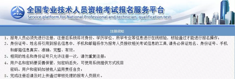 阅读专业技术人员资格考试网上报名协议,并点击【接受】按钮,此时进入注册须知页面,如下图所示。