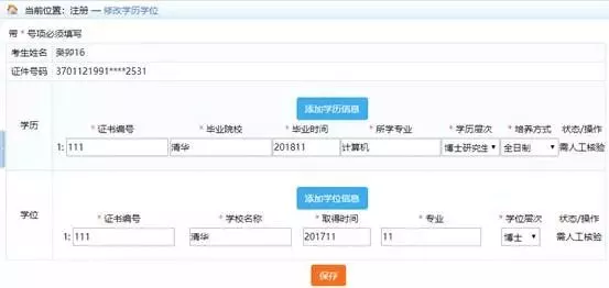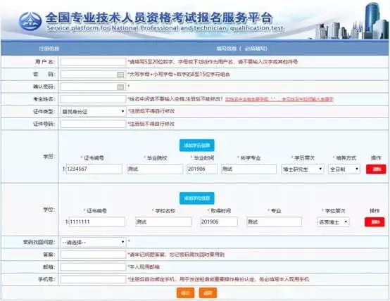 6.至少录入一条学历信息才能注册成功。