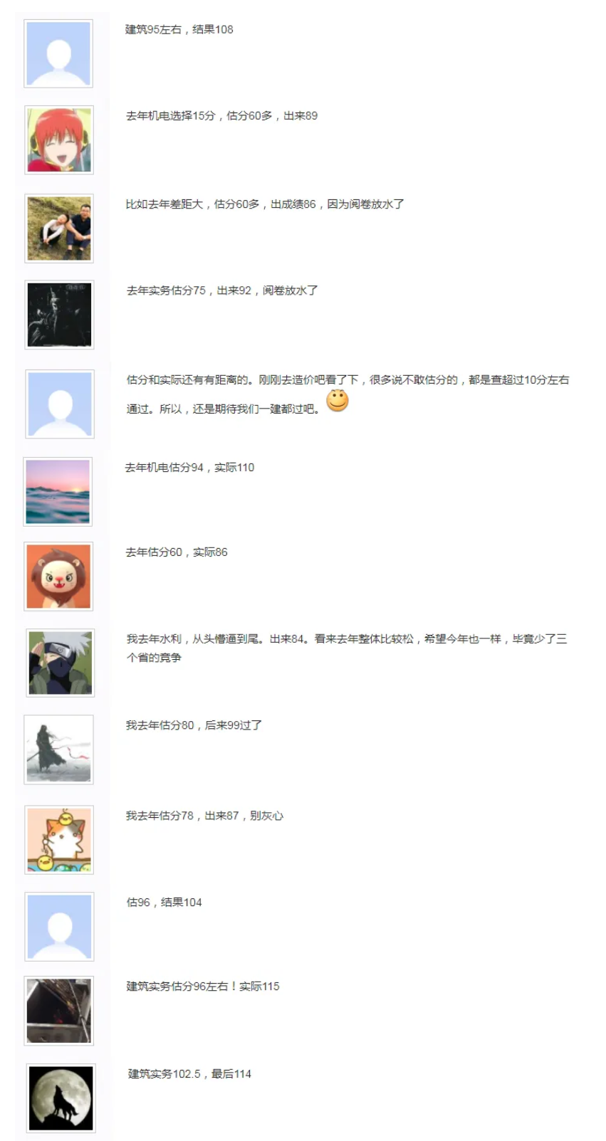 小编收集了往届考生的估分和实际得分的情况,咱们先来看看吧!
