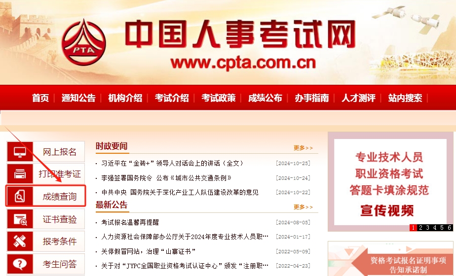 第一步:打开中国人事考试网站www.cpta.com.cn;